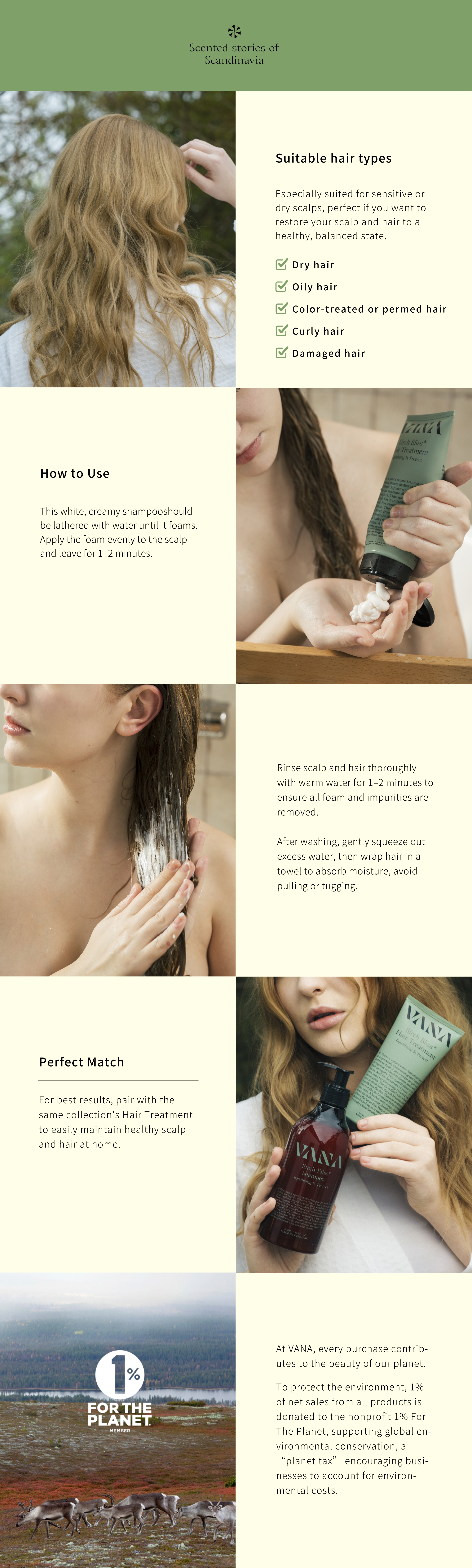 Inspired by Nordic sauna culture, this Birch Bliss Equalising & Protect Hair Hair Treatment blends avocado oil, pro-vitamin B5, and essential amino acids to deeplynourish hair and repair damaged roots. Like the soothing comfort of a Nordic sauna, it provides deep care and relaxation with every use, leaving hair healthy, shiny, and full of natural vitality.