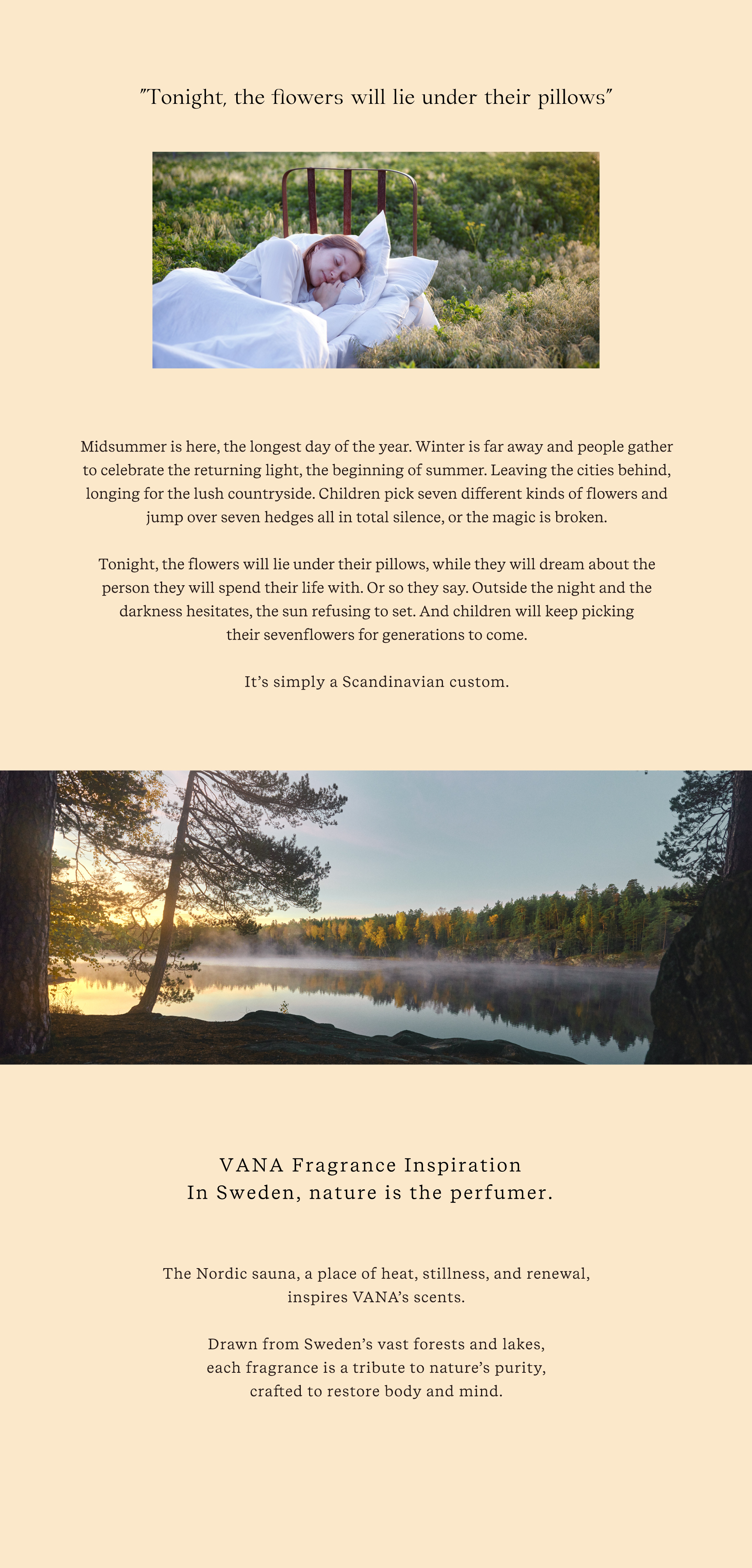 Midsummer is here, the longest day of the year. Winter is far away and people gather to celebrate the returning light, the beginning of summer. Leaving the cities behind, longing for the lush countryside. Children pick seven different kinds of flowers and jump over seven hedges all in total silence, or the magic is broken.