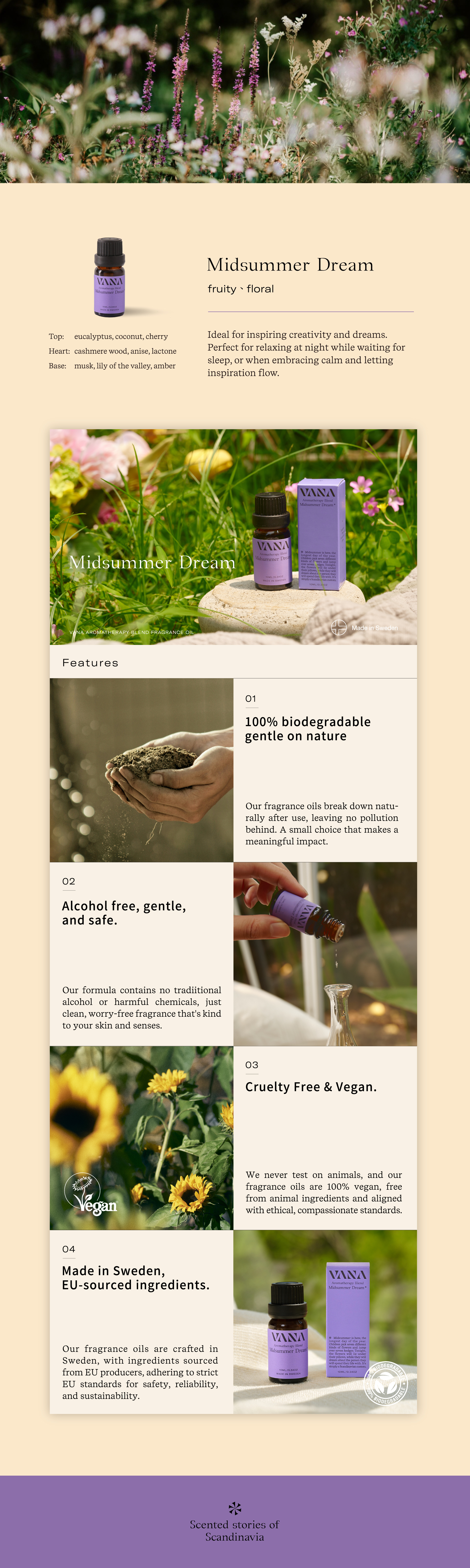 Add VANA essential oil to the glass chamber of the diffuser. Power on the diffuser to release the aroma and create your personalized scented atmosphere.