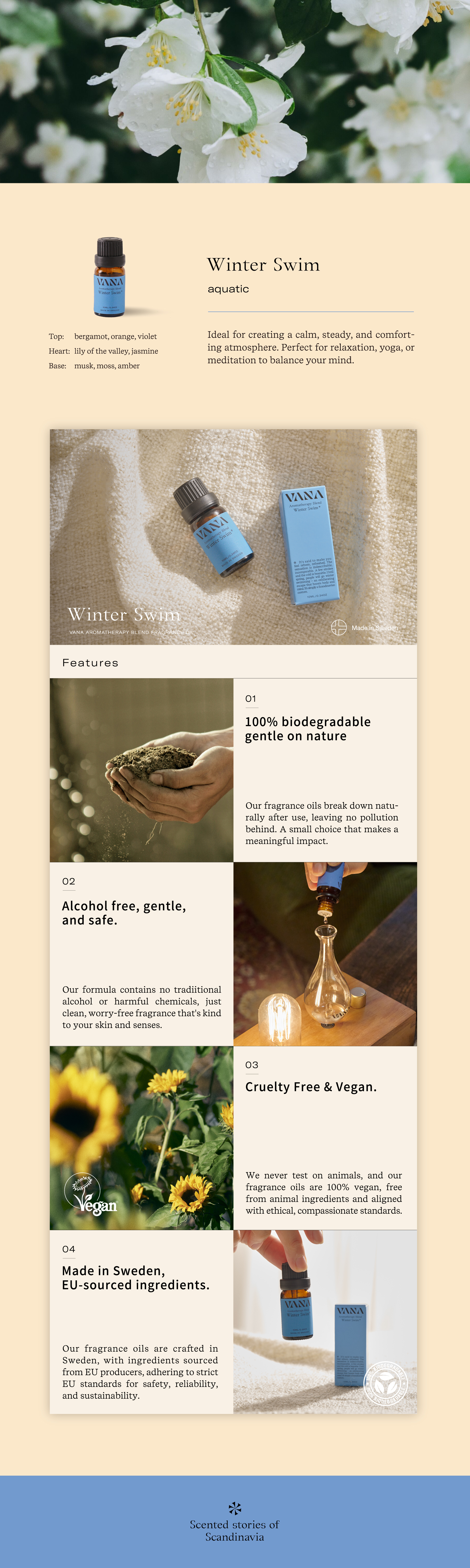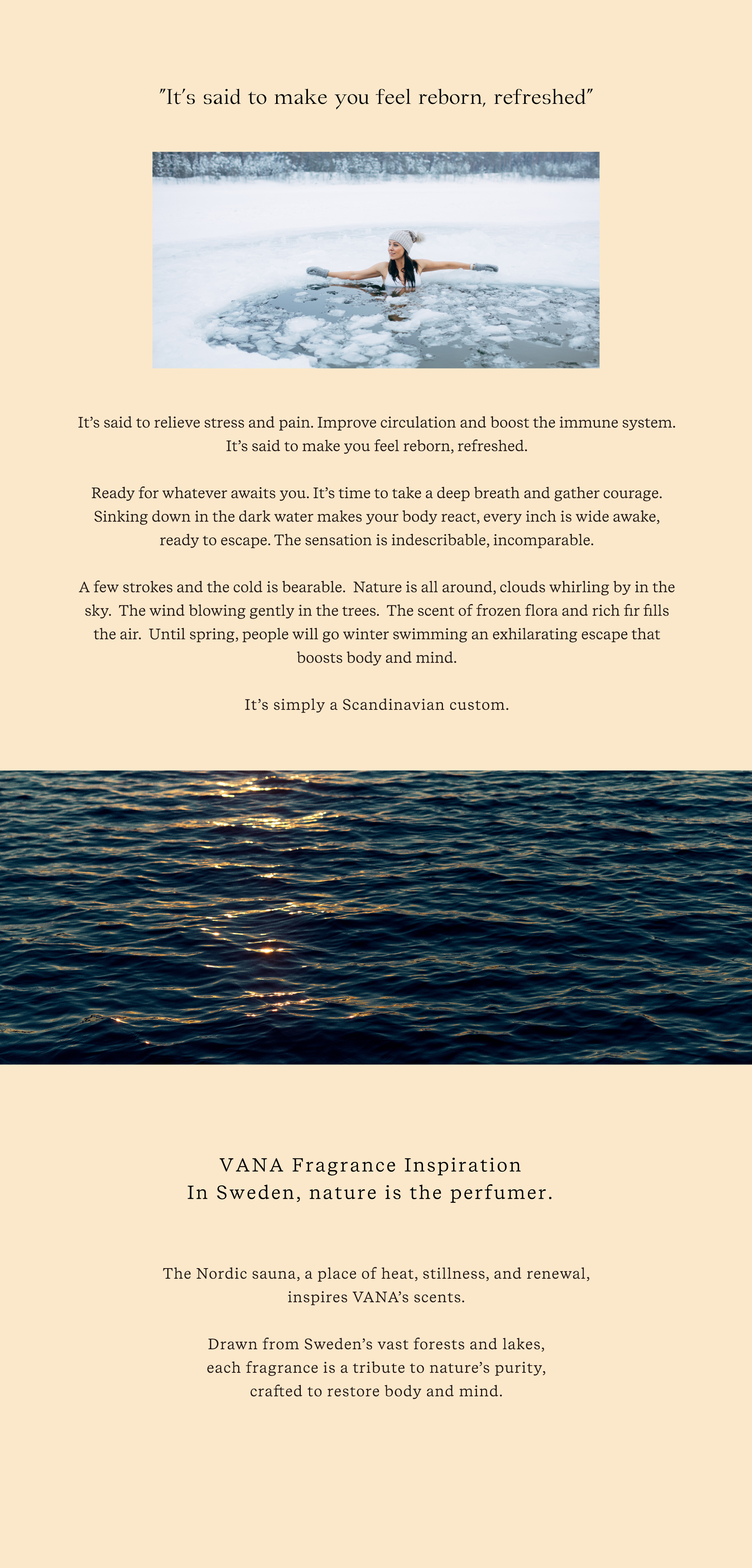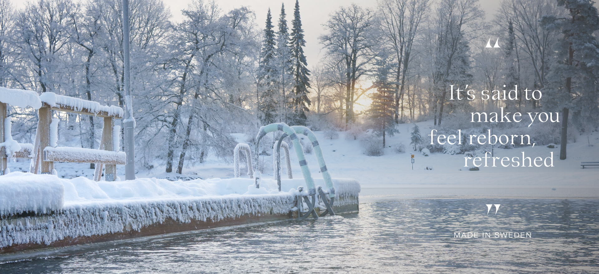 A few strokes and the cold is bearable. Nature is all around, clouds whirling by in the sky. The wind blowing gently in the trees. The scent of frozen flora and rich fir fills the air. Until spring, people will go winter swimming an exhilarating escape that boosts body and mind.