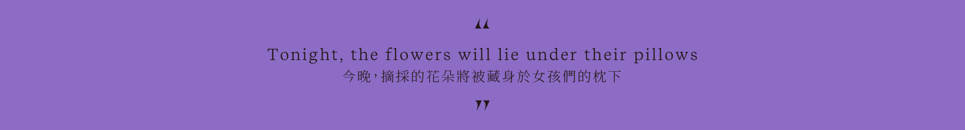 擁有最長日光的仲夏之夜就在今晚。冬天已遠離,人們聚在一起歡慶重返的日光與夏日的開場,並渴望遠離塵囂,安身於鄉村田野間。此時的北歐女孩們將摘採7種花朵、躍過7道樹籬,一切都要輕巧無息地完成,不然神秘的仲夏之夜魔力將會消逝。今晚,摘採的花朵將被藏身於女孩們的枕下,據說這麼做的女孩將會夢見與之相守一生的伴侶。外頭的夜幕遲遲不願降臨,陽光也拒絕落下,在充滿魔力的仲夏之夜,女孩們找尋著七朵花的習俗,將繼續世代流傳著。