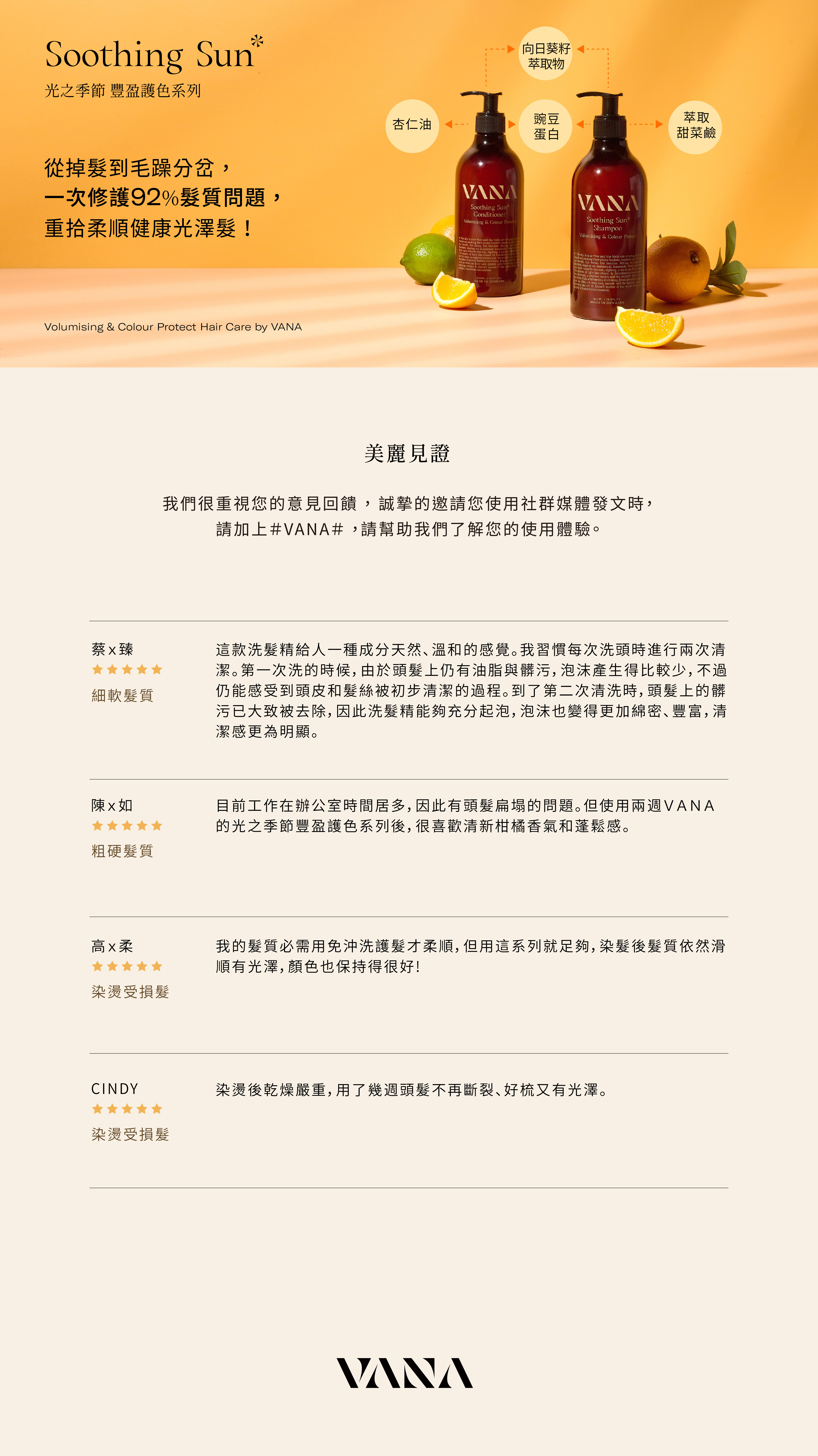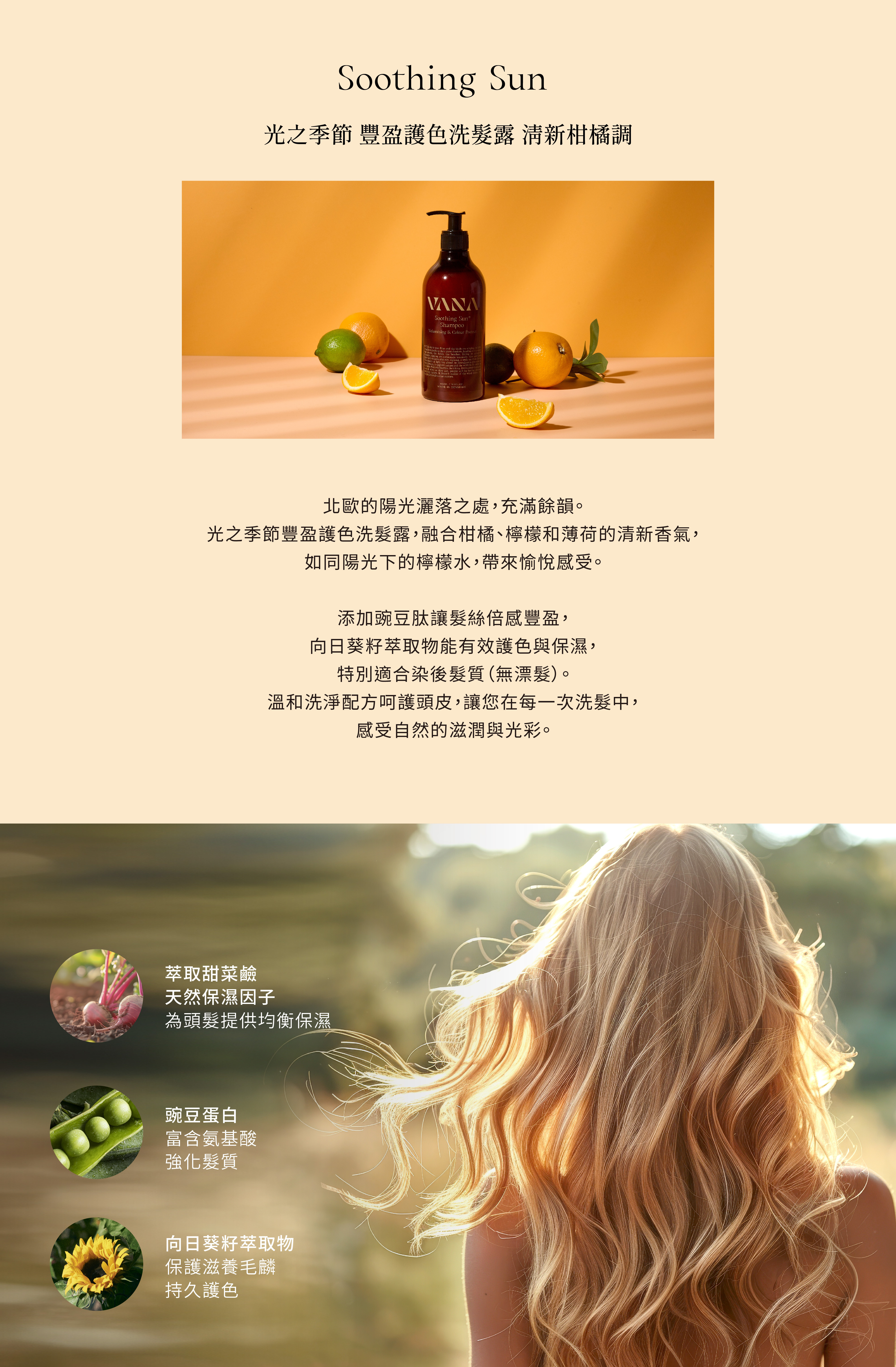 光之季節豐盈護色洗髮露,融合柑橘、檸檬和薄荷的清新香氣,如同陽光下的檸檬水,帶來愉悅感受。添加豌豆肽讓髮絲倍感豐盈,向日葵籽萃取物能有效護色與保濕,特別適合染後髮質(無漂髮)。溫和洗淨配方呵護頭皮,讓您在每一次洗髮中,感受自然的滋潤與光彩。