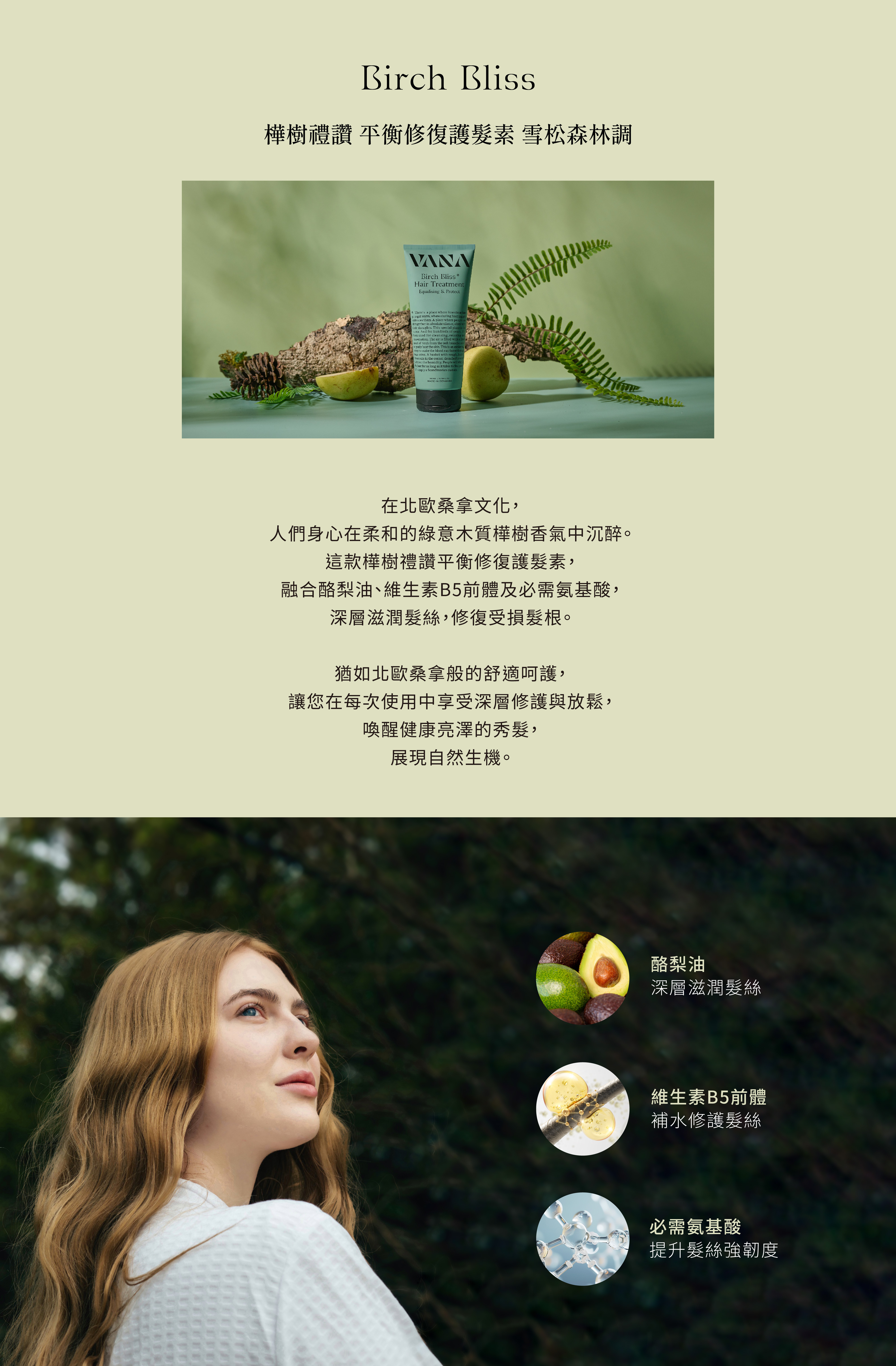 ■ 富含酪梨油,深層滋養髮絲並鎖住水分
