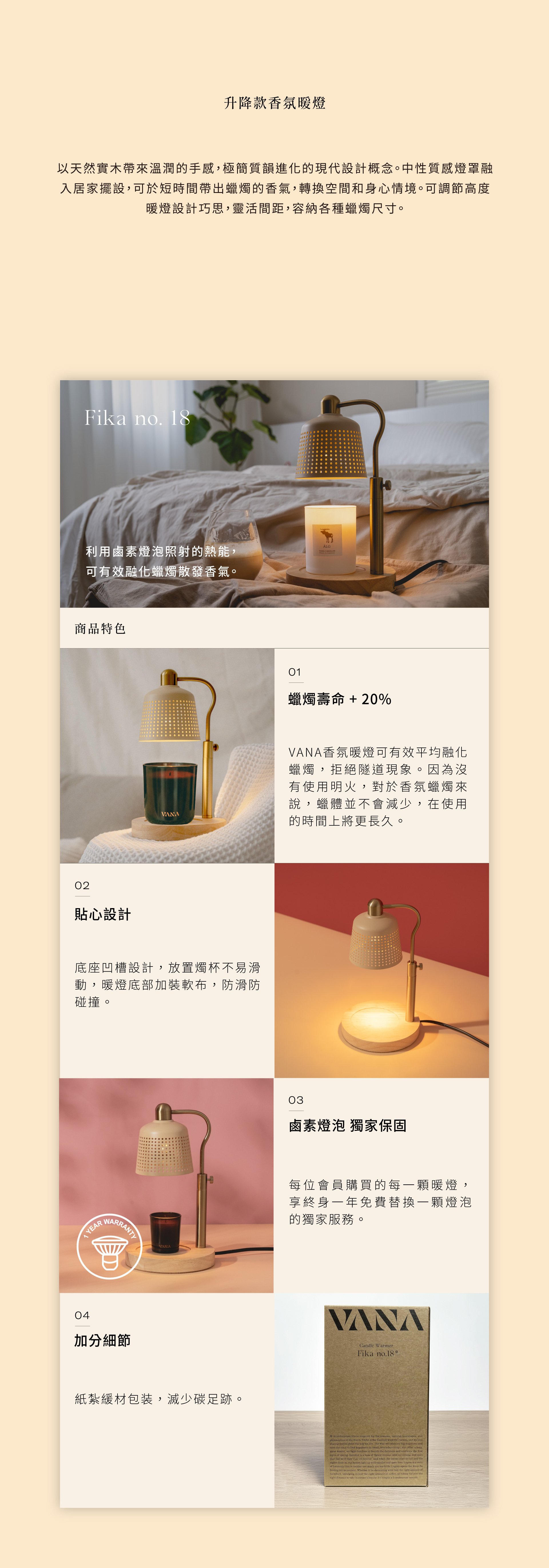 Fika No. 18 升降款香氛暖燈-奶茶杏 (終身燈泡保固) - 歐規