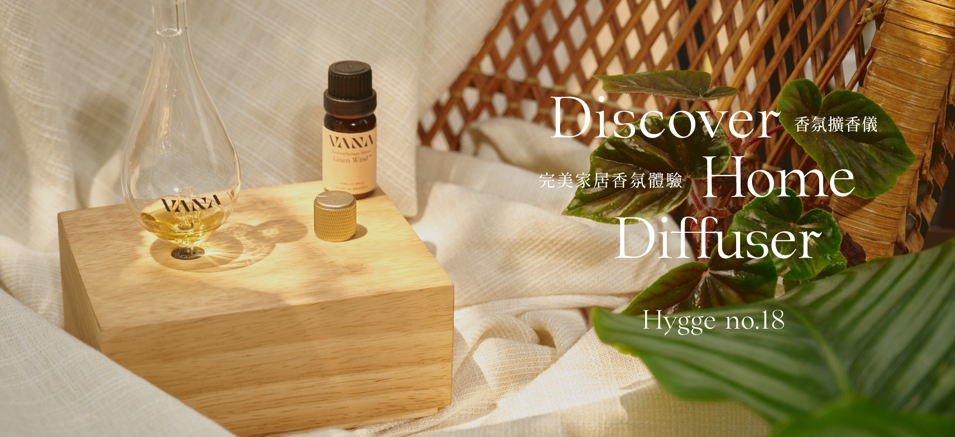 將VANA香氛精油加入擴香儀玻璃瓶身中,打開電源,使其散發出香氣,營造專屬空間香氛體驗。