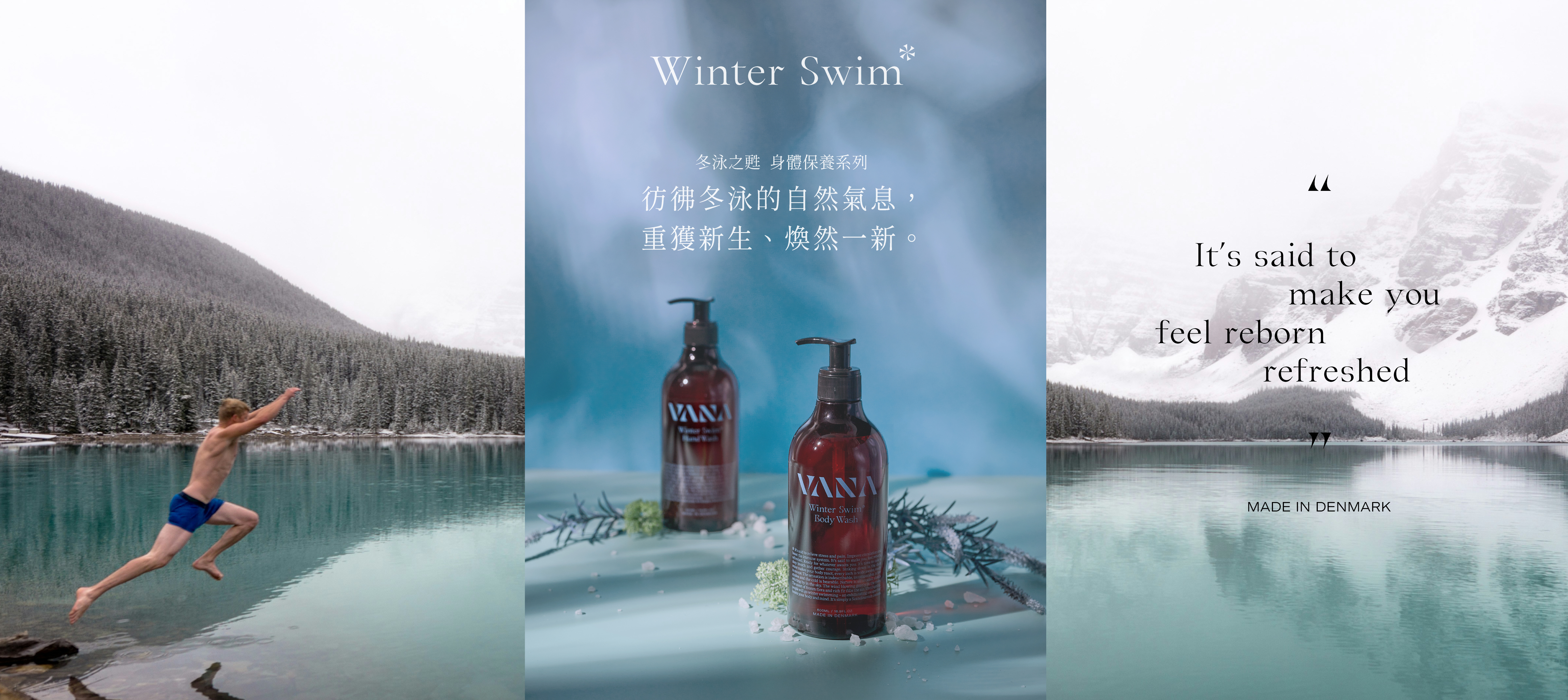 據說北歐有個習俗可以舒緩壓力與疼痛、改善身體循環、增強免疫系統,彷彿重獲新生並感到前所未有的神清氣爽。請準備好接下來要發生的事,做一次深呼吸並鼓起勇氣,將身體沒入冬天冰冷的深水中,讓身體細胞一寸寸地甦醒,伺機而動,難以形容的感官刺激。踩幾下水,似乎比較能接受那不斷侵襲的寒意,開始感受到徜徉在大自然間、雲朵在天空漫舞,風輕撫過松木林間的樹梢,空氣瀰漫著冰凍植物混著冷杉松木的香氣。春天來臨之前,北歐的人們會去冬泳 - 一種特別提振身心的方式。