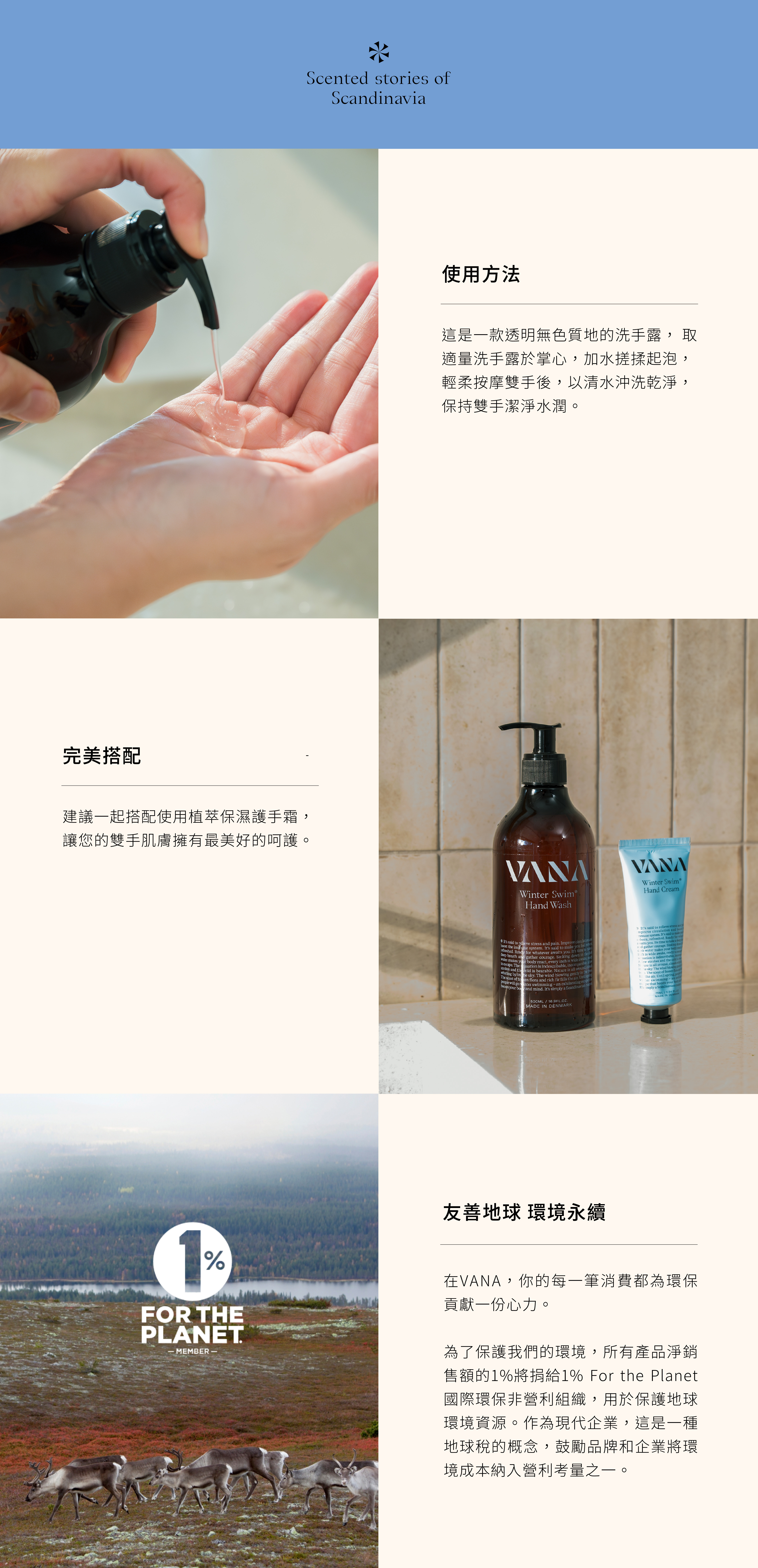 據說北歐有個習俗可以舒緩壓力與疼痛、改善身體循環、增強免疫系統, 彷彿重獲新生並感到前所未有的神清氣爽。請準備好接下來要發生的事, 做一次深呼吸並鼓起勇氣,將身體沒入冬天冰冷的深水中,讓身體細胞一寸寸地甦醒, 伺機而動,難以形容的感官刺激。踩幾下水,似乎比較能接受那不斷侵襲的寒意, 開始感受到徜徉在大自然間、雲朵在天空漫舞,風輕撫過松木林間的樹梢, 空氣瀰漫著冰凍植物混著冷杉松木的香氣。春天來臨之前,北歐的人們會去冬泳 - 一種特別提振身心的方式。